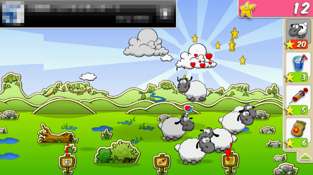 空の上には雲がプカプカ浮かんでおり、タップやスライド操作で雲を引きちぎったり、雨雲や雷雲にすることができます。雷や雨によって羊たちは病気にかかり、注射で治療するか、死亡させて新しい雲にすることができます。牧場の草の上には立て札が立ち、遊び方のガイドやレベルクリアの条件などを指示してくれます。